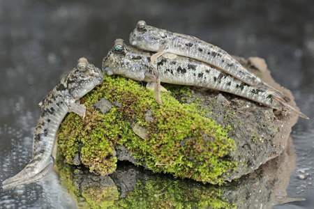 Three barred mudskippers are resting. This fish has the scientific name Periophthalmus argentilineatus.
