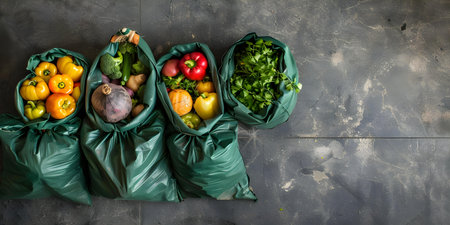 Eco-Friendly Kitchen Waste: Sorting in Green Bags for Composting in a Sustainable Living Setup, Including Fruits, Veggies, and Scraps. Concept Eco-Friendly Living, Composting Tips