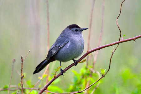Cute catbird close up portrait on the tree