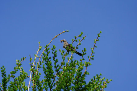 sparrows sitting on the spruce branch