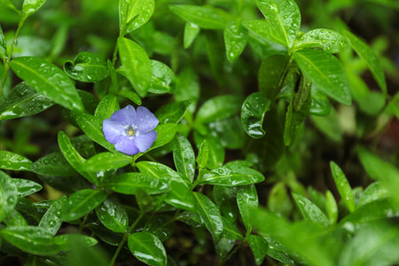 Periwinkle plant with green leaves and blue flowers Five-petalled.