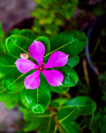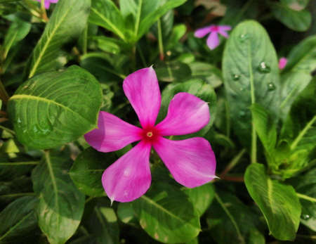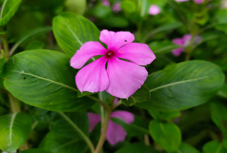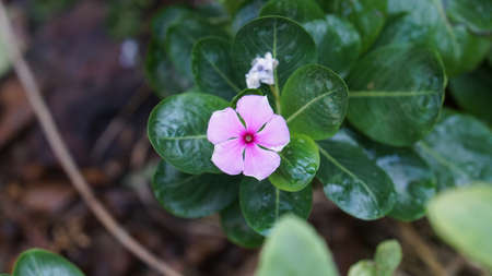 Catharanthus roseus G Don ,APOCYNACEAE or Madagascar periwinkle or Vinca or Old maid or purple flower or pink flower in the garden