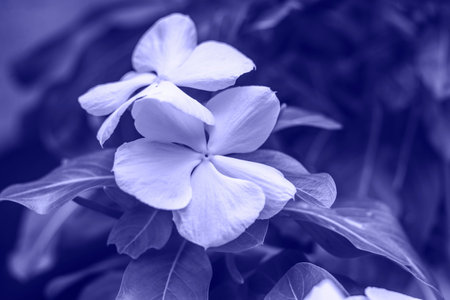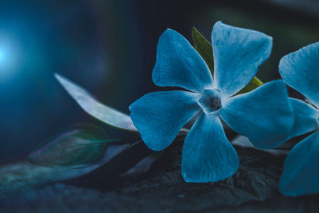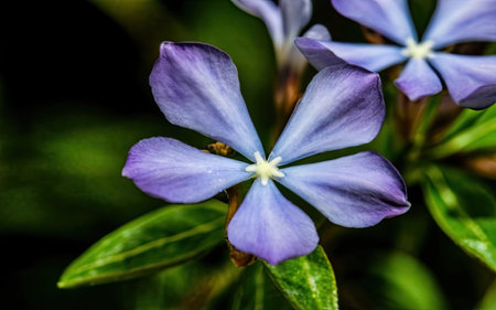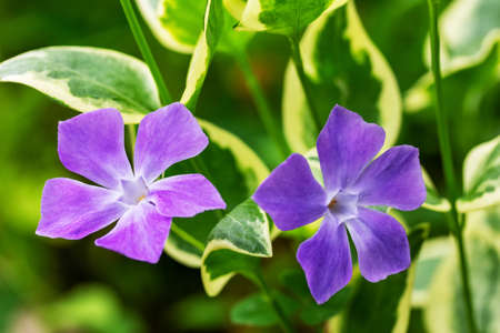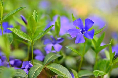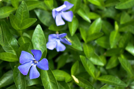 Periwinkle vulgaris, flowers of clear blue color close-up
