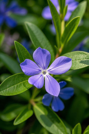 Enchanting Blue Periwinkle Blossom Captured with Selective Focus --ar 3:2
