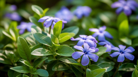 periwinkle flowers growing in the meadow
