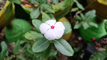 Catharanthus roseus G Don ,APOCYNACEAE or Madagascar periwinkle or white flower in the garden