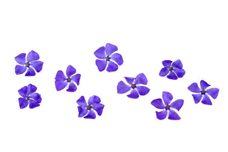Macro photo of blue periwinkle flower, blossoming flowers on isolated white background.