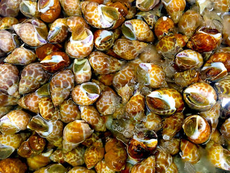 fresh snail Spotted babylon wich ice in seafood market.