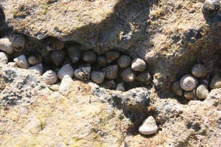 A group of sea snails in a rock crevice on the coast of Majorca, Balearic island, Spanien