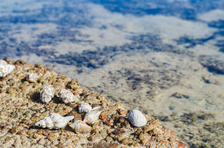 Few seashells sticked on the rock in Seychelles, Mahe island