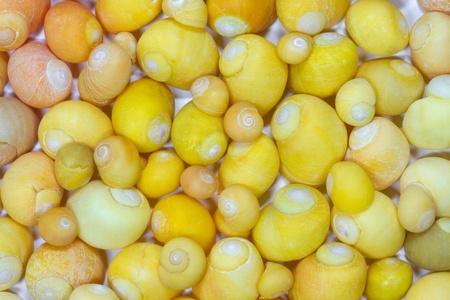Arrangement of yellow sea snails as background