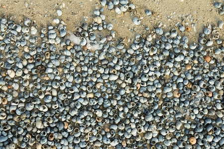 Many identical shells lying on the seashore
