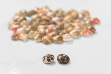 tiny sea shells, Lunella coronata, In Okinawa it is a small sea snail called Chinbora