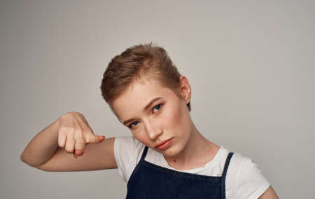 Pretty woman short hairstyle makeup emotions close-up