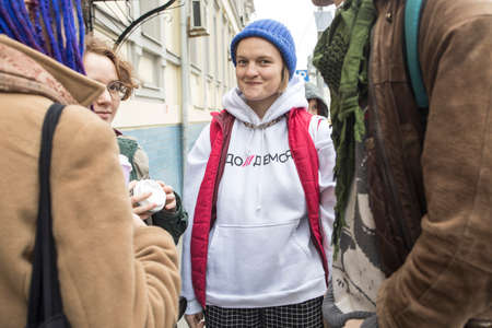 Moscow, Russia - 01 October 2021, Journalists of magazine Doxa face jail over Navalny protest. Natasha Tyshkevich. The court extended house arrest until November