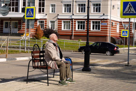 Elderly man resting on a bench and enjoying the sun
