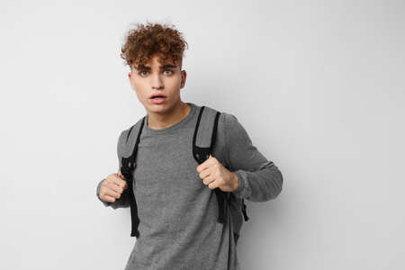 Attractive man posing with a backpack college Lifestyle unaltered