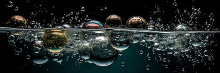 bubbles under water on dark background. banner. generative ai
