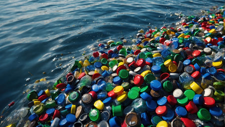 plastic bottle caps in the ocean