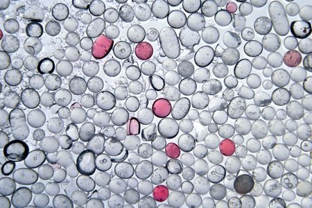 The image of set of small translucent balls. Among them red balls are interspersed. In a reality it is image Silica gel.