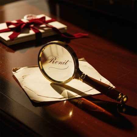 Magnifying glass and envelope on a table with a gift box.