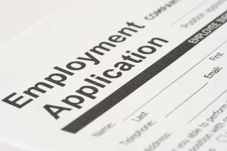 Blank employment application form in hands on a desk
