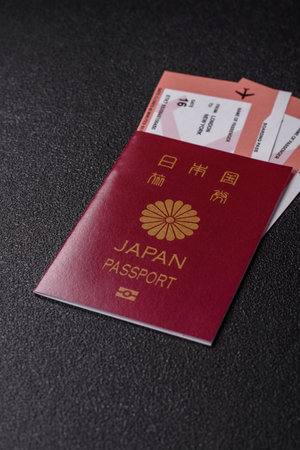 Japanese citizen passport, visa document for travel, immigration or tourism. Japanese passport as background for your design