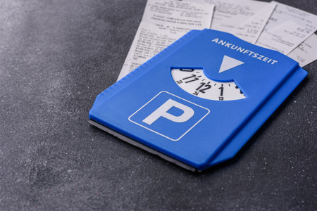 A parking disc, permit, or ticket for measuring time and paying municipal services. A parking disc as a background for your design