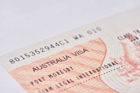 Tashkent, Uzbekistan - 13 August, 2021: Macro shot of Australian visa. Close-up australian resident immigration visa in passport