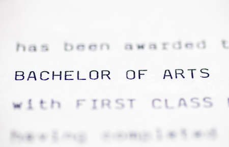 Close up of a higher education certificate with the holder having achieved a Bachelor of Arts degree with first class honours.