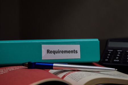 Concept of Business Licensing Requirements write on sticky notes isolated on Wooden Table.