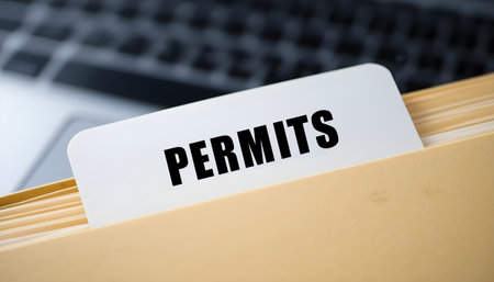 Close-up reveals a folder labeled 'Permits', suggesting business or regulatory compliance paperwork.