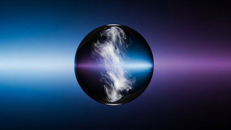 (662) showing abstract sphere containing swirling white smoke against a gradient background of blue and purple light. resolution