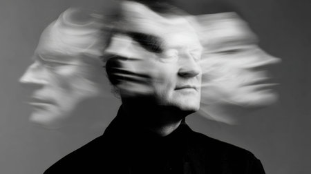 Conceptual Motion Blurred Photo of Crazy Person. Bipolar Disorder. Mental Health and Psychology Concept. Different of Emotions