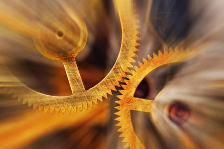 Metal Cogwheels in clock mechanism , abstract sun beams, Concept Movement is life, Teamwork , Idea Technology, Infinity. Macro.