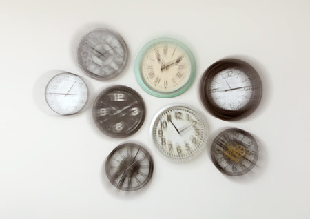 Face shows focus while surrounding elements create a blur of motion in a studio environment without clear activity.
