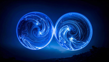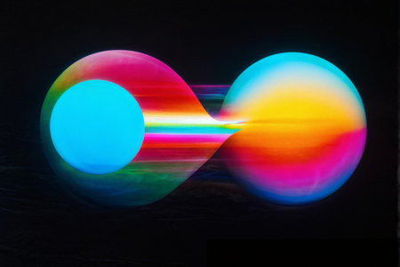Create an abstract image using light painting techniques, swirling LED lights in front of the camera in a dark environment