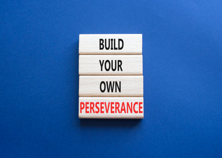 Perseverance symbol. Wooden blocks with words Build your own Perseverance. Beautiful deep blue background. Business and Build your own Perseverance concept. Copy space.