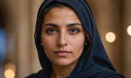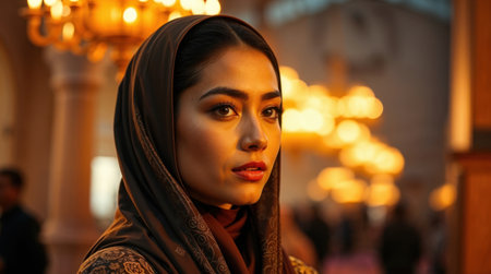 A professional portrait of islamic woman photograph of Ramadan, graceful and elegant, refined features