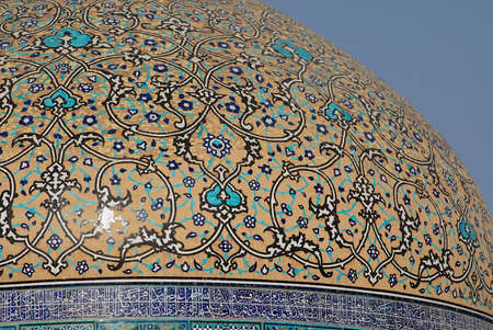 Exterior detail of the Sheikh Lotfallah Mosque cupola in Isfahan, Iran.
