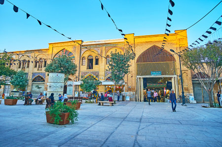 SHIRAZ, IRAN - OCTOBER 12, 2017: The Zand walking street is the central tourist promenade in old town, separating two parts of historic Vakil Bazaar, on October 12 in Shiraz.