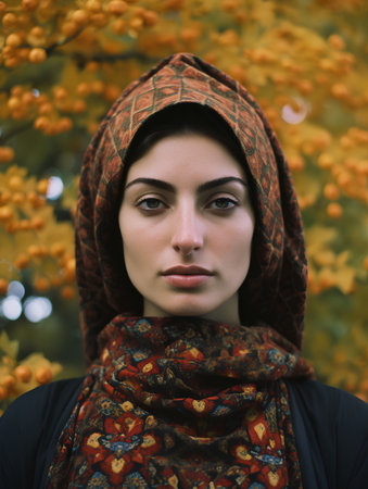 Beautiful young woman in a headscarf in the autumn park