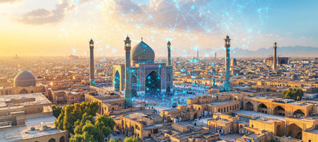Naqsh-e Jahan Square with Digital Network Overlay, Symbolizing Technology in Isfahan, Iran