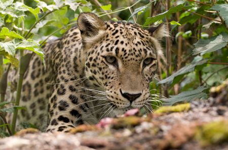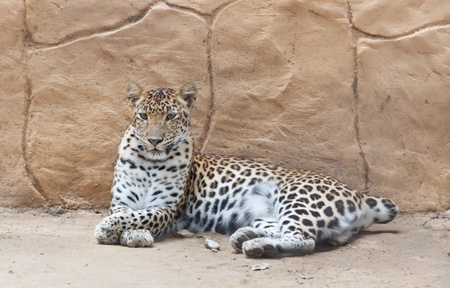 Leopard (Panthera pardus) resting in the zoo