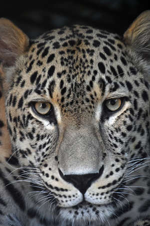 Leopard portrait on dark background, close-up portrait of wild animal