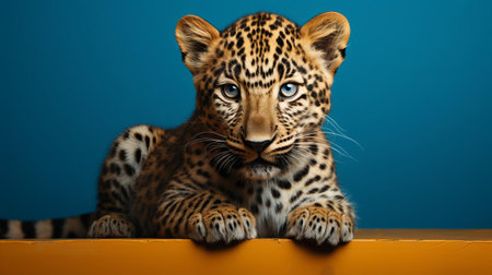 Leopard on a blue background. Close-up. Studio shot.