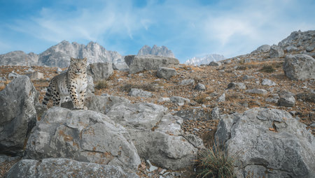 Cheetah in the mountains. Wild leopard in the mountains.