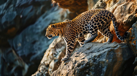 Leopards Dance in the Wild A leopard moving gracefully in its natural habitat captured in the perfect moment of beauty and power Vibrant dynamic motion