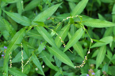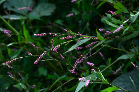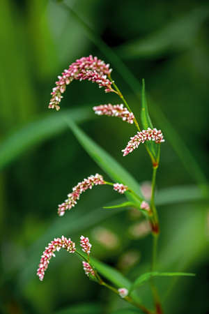 The medicinal plant Polygonum hydropiper blooms in the garden.