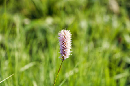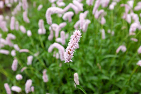 Flowers of Bistorta officinalis known as bistort, in the garden.